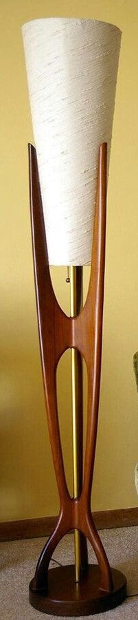 Add timeless elegance to your interior with this mid-century modern floor lamp, featuring a sculptural teak wood base and a textured cone-shaped shade. Perfect for vintage-inspired or contemporary spaces, it offers ambient lighting with artistic flair.