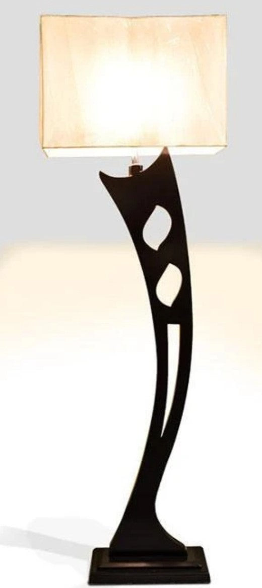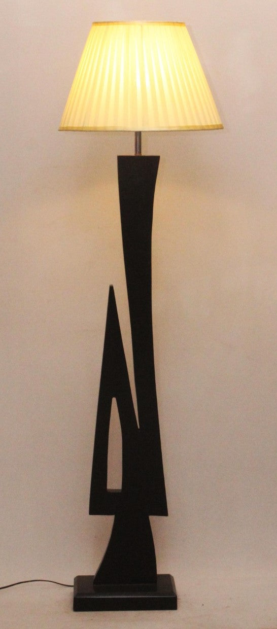 This modern floor lamp features an artistic abstract wooden base paired with a warm pleated fabric shade, offering a perfect mix of creative form and ambient lighting for stylish interiors.